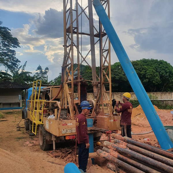 Durante a perfuração do poço, nossa equipe mantém um registro diário atualizado da perfuração, contendo as seguintes informações: 1) diâmetro e profundidade do furo, 2) material perfurado, 3) registro temporal e 4) profundidade do nível de água no início e no fim da jornada de trabalho.