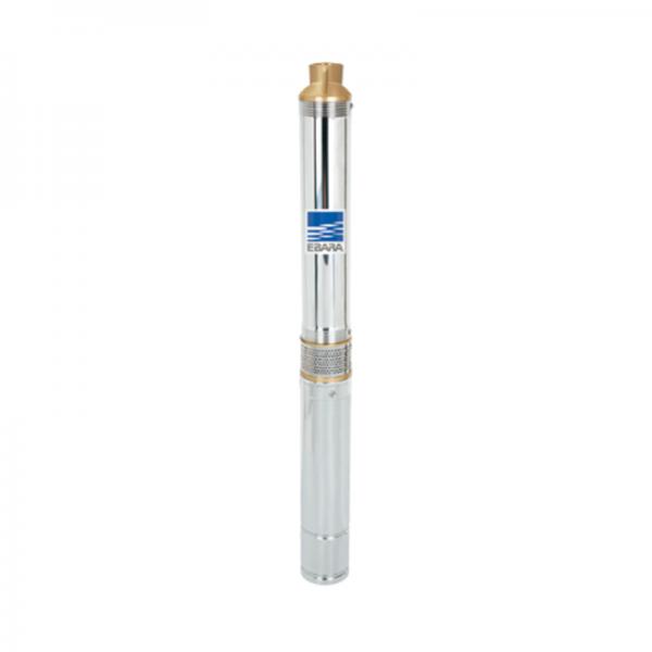 Motobomba centrifuga submersa multiestágios, diâmetro máximo 97mm, com bocal de saída de 1.1/4” BSP, acoplada com motor elétrico assíncrono lubrificado a óleo de grau alimentício ou água, 60Hz, 2 pólos, rebobinável. Os bombeadores 4BPL Ebara foram projetados para serem acoplados a motores construídos com padrão de acoplamento NEMA. Disponíveis nos modelos de motores: OM4A, 4WP e M4P2 (rebobinável em aço carbono ou aço inox).